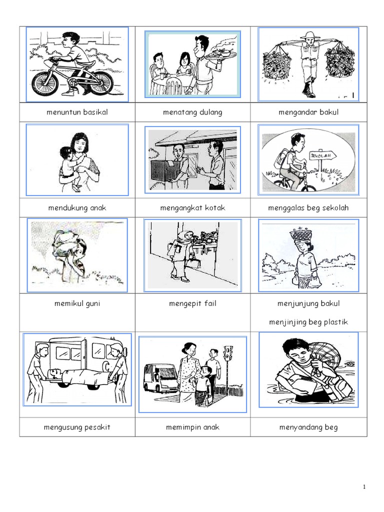 1 menuntun basikal 2 menatang dulang 3 mengandar bakul 4 mendukung anak 5 mengangkat kotak 6 menggalas beg sekolah 1. Contoh RPH Tahun 2. Membonceng pula bermaksud orang menumpang sama ada menaiki basikal atau motosikal.